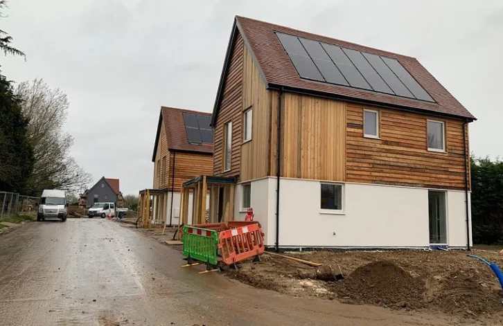Springfield Meadows, located near Abingdon, Oxfordshire, comprises of 25 homes, using zero-carbon construction and net zero energy in use when occupied.