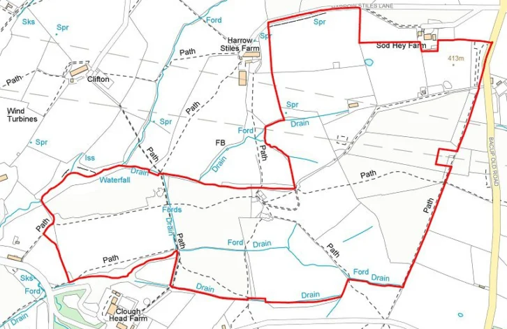 Situated close to the Lancashire-Yorkshire border towards the westerly edge of the Pennine Moors, Trice Barn Farm features a three bedroomed farmhouse, steel-framed livestock building, several miscellaneous buildings and on a site of largely rough grazing land extending to around 80 acres.