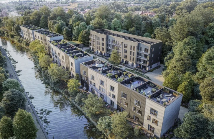 Located on the Leeds-Liverpool Canal, ‘Stall’ will be a new sustainable place designed to support the fabric, urban grain and context of the site, encouraging nature to flourish within an urban setting. The canal-side location includes a precious green corridor that passes Kirkstall Valley Nature Reserve and the famous Kirkstall Abbey, an easy route for cycling (13 minutes) and walking (40 minutes) straight into the heart of central Leeds. ‘Stall’ will feature 4-bed ‘Canal Houses’, 1 and 2-bed ‘Loft Apartments’ and 2-bed Gatehouse Apartments.
